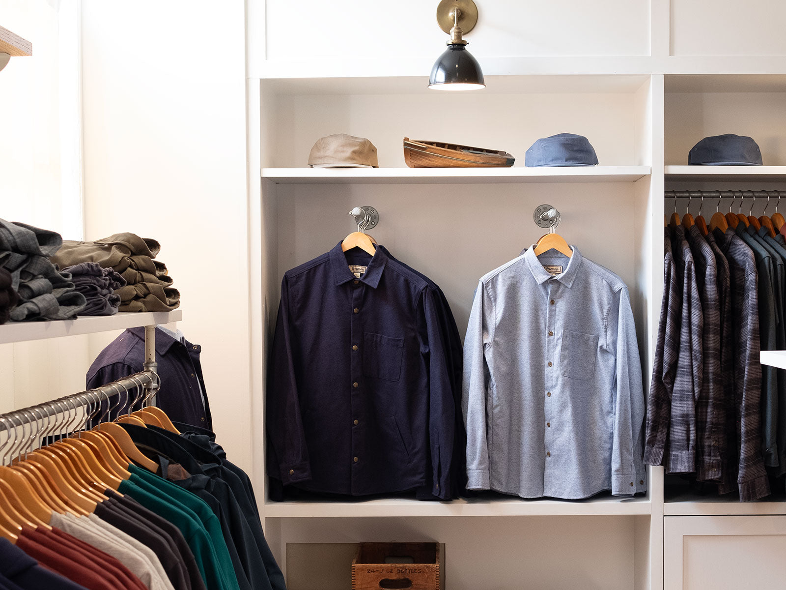 Located in the SODO neighborhood of Seattle, an area with a rich history of manufacturing, we honor this tradition as we make our items in-house at our production facilty. Housed in the 2nd floor of a classic building in the heart of Seattle our location also contains a comfortable and inviting showroom where customers can shop and try-on pieces all while getting a glimpse of how Freeman is designed and produced.